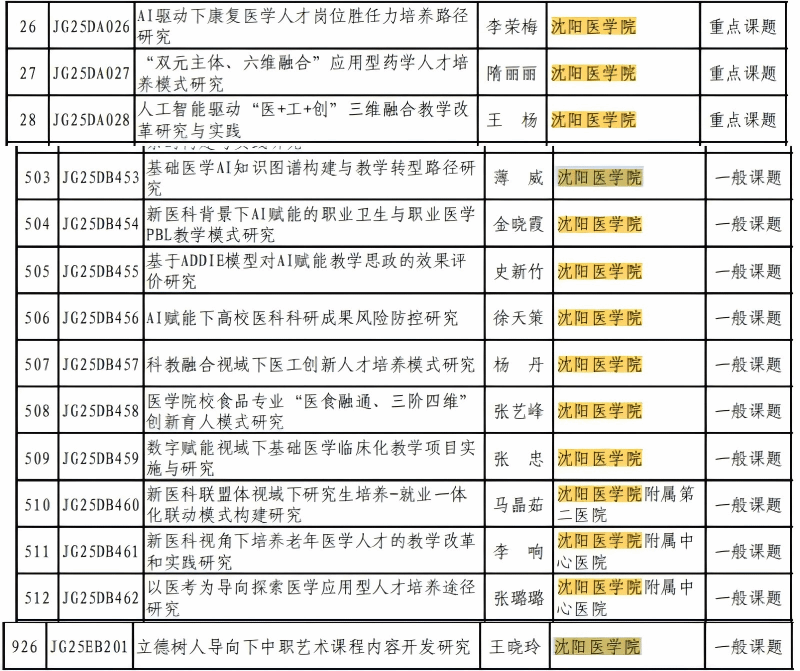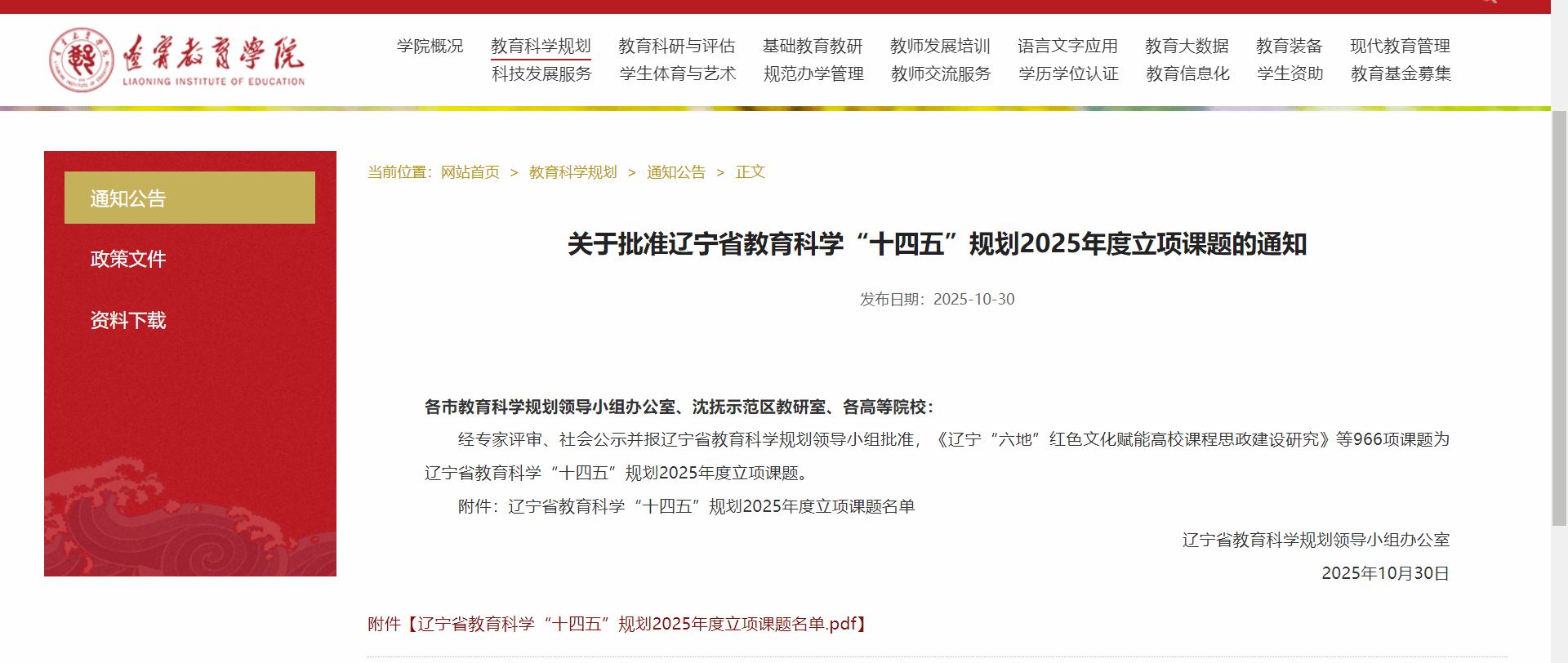 近日,辽宁省教育科学规划领导小组办公室发布“辽宁省教育科学“十四五”规划2025年度立项”课题立项名单中,我校共14项课题获得规划课题立项。其中重点课题3项,一般课题11项;3项课题获批“辽宁省教育科学“十四五”规划2025年度教师队伍建设研究专项”,1项课题获批“2025年辽宁省教育科学研究基地专项课题”,立项数量位列全省高校前列。